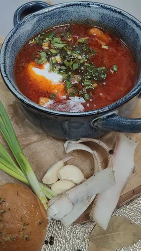 Борщ со сметаной — это традиционное блюдо славянской кухни, представляющее собой насыщенный свекольный суп, приготовленный на мясном или овощном бульоне. В его составе находятся свежие овощи, такие как капуста, картофель и морковь, что придает блюду богатый вкус и яркий цвет. Подается борщ горячим, с добавлением густой сметаны, которая смягчает вкус и делает его более кремовым. Упаковка продукта обеспечивает длительное хранение и сохранение всех полезных свойств ингредиентов. Борщ со сметаной идеально подходит как для повседневного, так и для праздничного стола, радуя своим ароматом и насыщенным вкусом. Рекомендуется подавать с черным хлебом или пампушками для полноценного наслаждения.