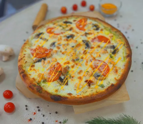 Предлагаем вашему вниманию пиццу с курицей и грибами, созданную по традиционному рецепту из качественных ингредиентов. Нежное куриное филе, предварительно маринованное и обжаренное до золотистой корочки, в сочетании с ароматными шампиньонами, придаёт этому блюду восхитительный вкус и насыщенный аромат. Основа пиццы выпекается до хрустящей текстуры и щедро покрывается томатным соусом, который дополняет гармонию вкусов. Пицца щедро посыпана растертым сыром, который придаёт блюду кремовую составляющую и делает его еще более аппетитным. Идеальный вариант для семейного ужина или встречи с друзьями, она станет ярким акцентом в вашем меню. Насладитесь настоящим итальянским вкусом с нашей пиццей, приготовленной с любовью и заботой о каждом клиенте.