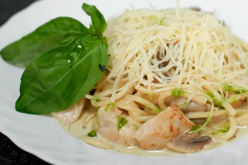 Фетучини с куриным филе и грибами